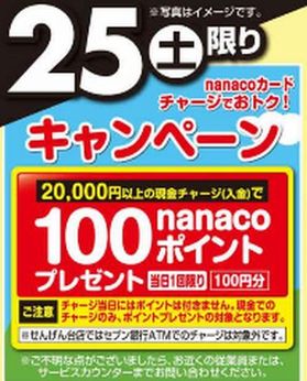 - 【10/25(土)限り】nanacoカードチャージでおトク!キャンペーン!