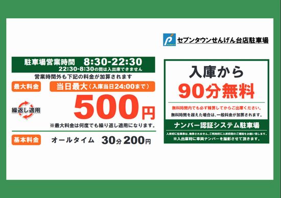 駐車場料金のご案内