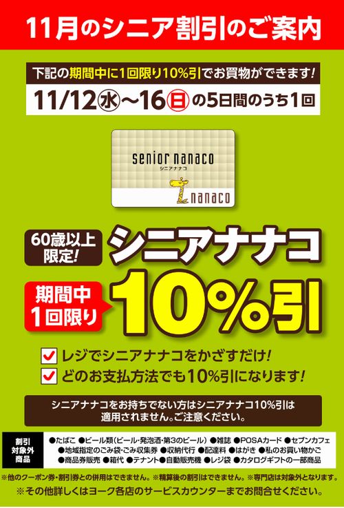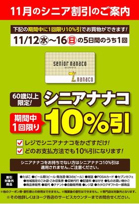 【11/12(水)₋16(日)】シニアナナコ10%引!